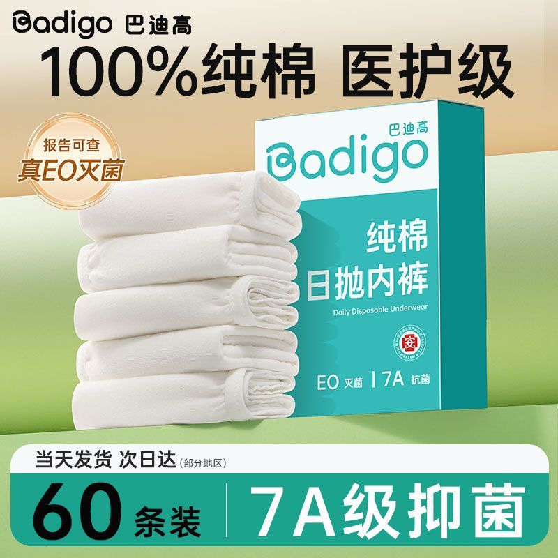60条巴迪高一次性内裤女7A级灭菌旅行免洗短裤产妇月子日抛底裤